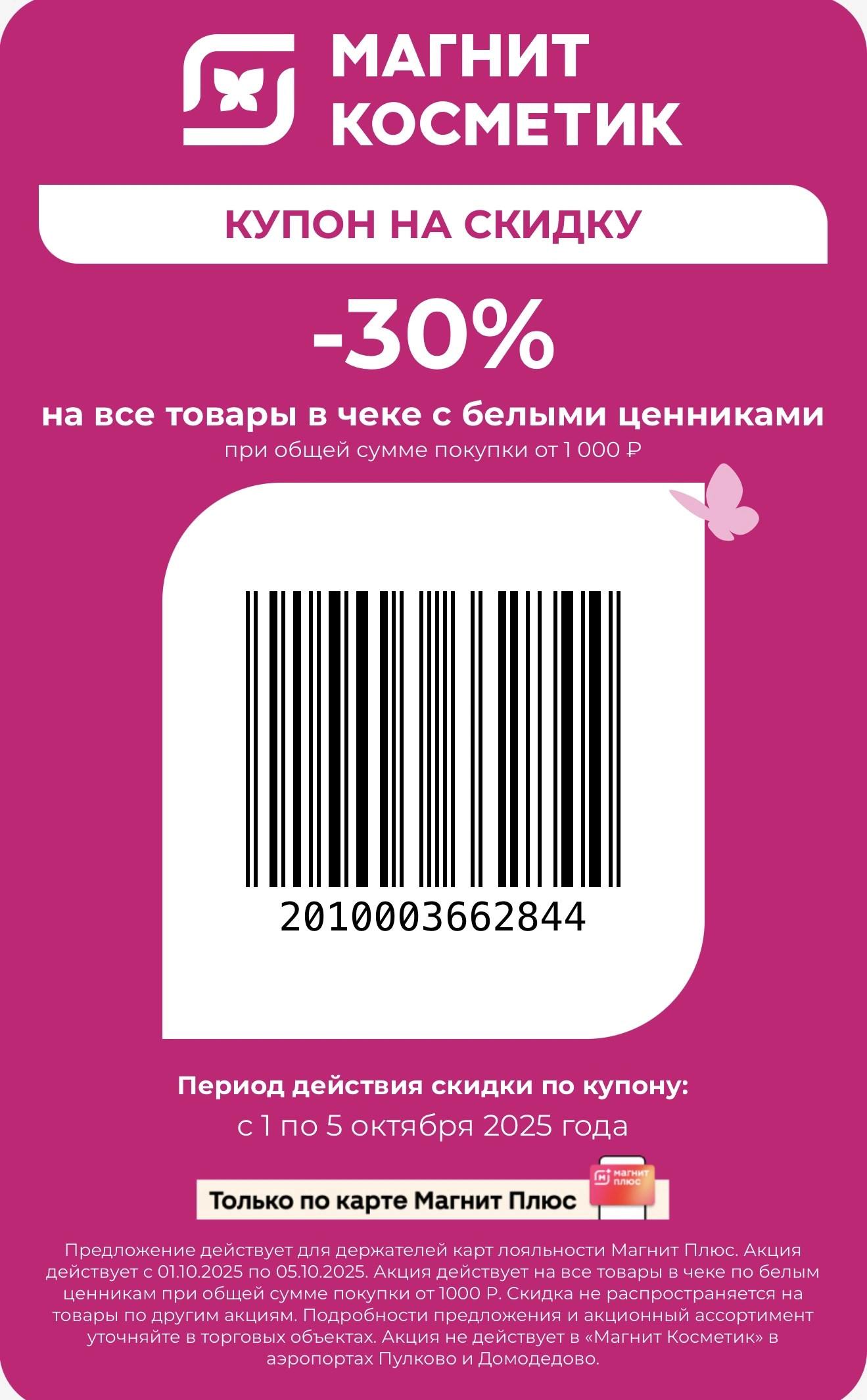 Скидка 30% на все товары в чеке с белым ценником от 1000 руб