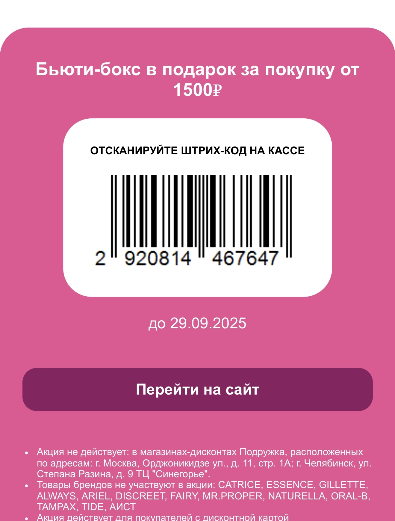 Бьюти-бокс в подарок при первой и всех повторных покупках от 1500 ₽ во всех розничных магазинах России
