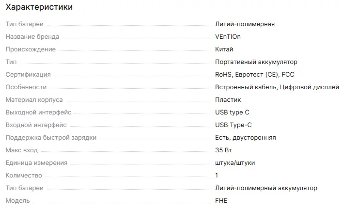 Внешний аккумулятор от известного бренда: ёмкость 20 000 мАч, мощность 20 Вт. На российских маркетплейсах подобные модели стоят от 3500 рублей. Встроенный порт Type-C. Индикация уровня заряда в процентах. Цена с купоном продавца. Экспресс-доставка. Отзывы в целом положительные.