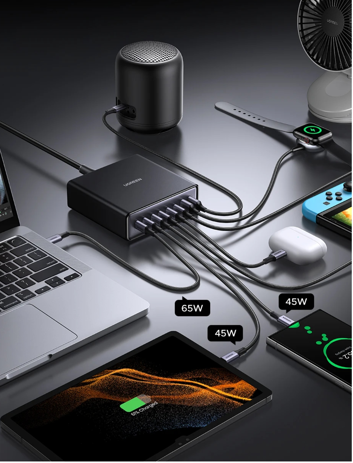Зарядное устройство GaN мощностью 200 Вт 8 в 1, настольная зарядная станция USB C для ноутбука Macbook, iPhone 16 15 Pro, Samsung iPad, планшета