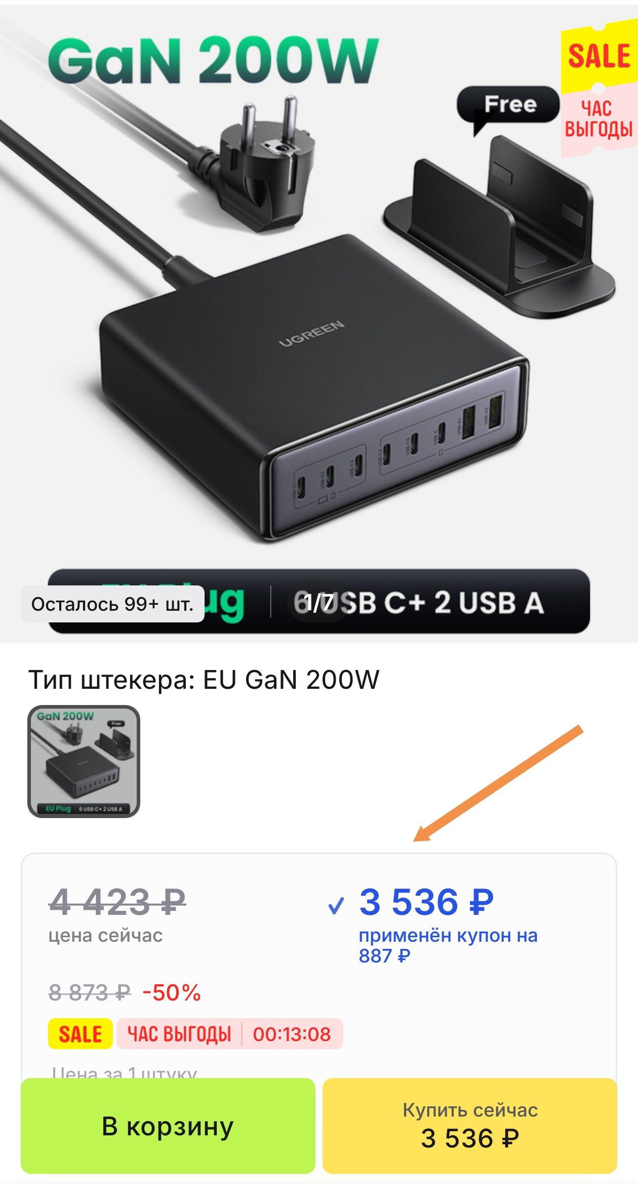 Применяется купон продавца