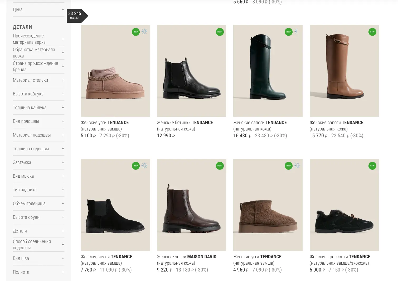 На сайте можно найти коллекции известных мировых брендов от бюджетного до среднего сегмента. Большой выбор позволяет подобрать как классические, так и трендовые образы на любой вкус и сезон.