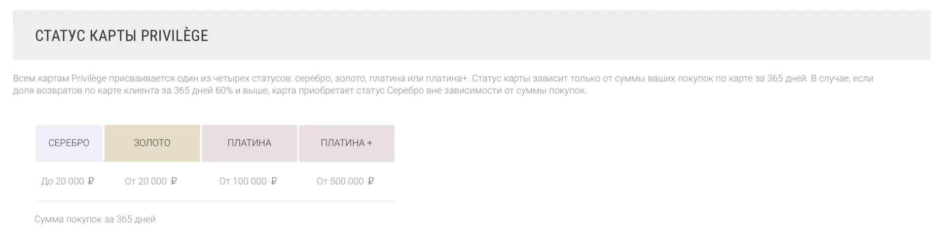 Бренд предлагает покупателям накопительную программу лояльности Privilege, которая активируется с первой покупки. Ее участники получают:
